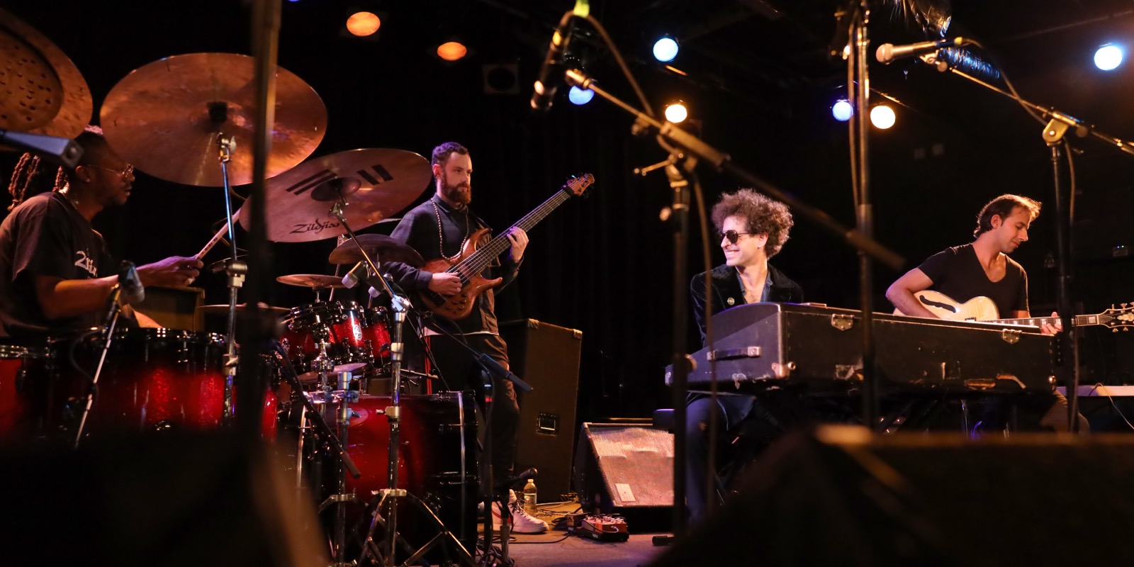 Jazz-fusion supergroup with Mohini Dey (Bass, 925K followers) and Blaque Dynamite (Drums). High-energy, technically virtuosic live performances.